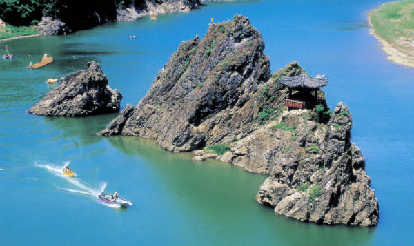 남한강 위에 솟아 있는 세 개의 봉우리로, 단양을 대표하는 상징적인 풍경 중 하나입니다. 물안개가 피어오르는 아침 시간에는 더욱 신비로운 분위기를 자아내며, 사진 촬영 명소로도 손꼽힙니다.